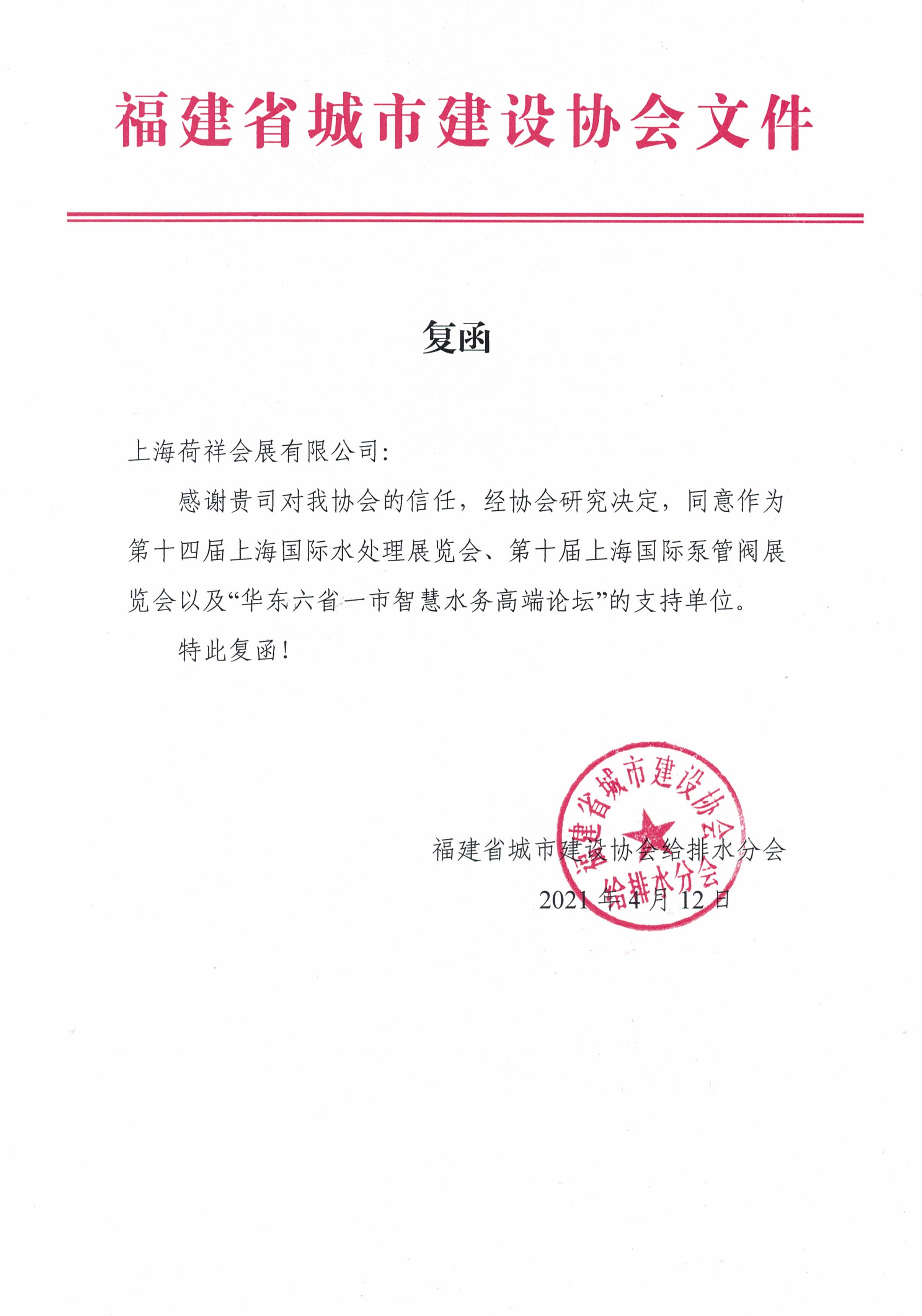 為幫助福建省水務(wù)企業(yè)進一步開拓市場,促進國內(nèi)外企業(yè)之間的經(jīng)貿(mào)合作與技術(shù)交流,福建省城市建設(shè)協(xié)會給排水分會決定將全力支持 2021 年 6 月 2 日在上海國家會展中心(虹橋)舉辦的2021華東六省一市智慧水務(wù)高端論壇,與主辦方上海荷祥會展有限公司攜手為城鎮(zhèn)水務(wù)行業(yè)搭建一個國際性商貿(mào)交流平臺,助力企業(yè)更好的抓住行業(yè)機遇,積極促進我國城鎮(zhèn)水務(wù)行業(yè)在"十四五"期間獲得快速發(fā)展。