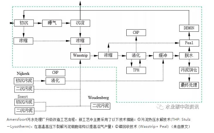2015年建成12個能源工廠。在此方面,荷蘭已經(jīng)取得一些積極成果,一些污水處理廠利用污泥厭氧消化產(chǎn)ch4,ch4熱電聯(lián)產(chǎn)(chp)發(fā)電/產(chǎn)熱反哺污水處理廠運行或供應(yīng)社會。dokhaven 污水處理廠主流工藝采用ab法,a、b兩段剩余污泥以不同脫水方式脫水再進入后續(xù)消化池厭氧消化產(chǎn)ch4,并用于chp發(fā)電和產(chǎn)熱:電用于污水處理廠運行,余熱用于消化系統(tǒng)加熱和冬季辦公室取暖等。apeldoorn污水處理廠引入?yún)捬豕蚕夹g(shù)同步處理剩余污泥和廚余垃圾,同時對污泥厭氧消化液采用側(cè)流自養(yǎng)脫氮(demon)工藝處理,以減少碳源消耗,增加更多剩余污泥量供厭氧消化轉(zhuǎn)化沼氣后用于chp發(fā)電。garmerwolde污水處理廠采用ab法中的a段將cod作為污泥(生物吸附)分離,并利用2個連續(xù)厭氧消化池處理這些污泥以及臨近的污水處理廠的剩余污泥。消化污泥脫水上清液采用節(jié)能型中溫亞硝化sharon工藝處理,沼氣chp發(fā)電可以滿足60%~70%的運行能耗,余熱則用于加熱消化池。阿姆斯特丹西區(qū)(amsterdamwest)污水處理廠目前是荷蘭最大的污水處理廠之一,該廠采用傳統(tǒng)污泥消化工藝。沼氣和消化后污泥送至附近垃圾焚燒廠使用和最終處置并生產(chǎn)能量。
