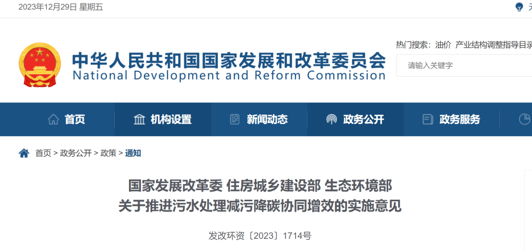 國(guó)家發(fā)展改革委 住房城鄉(xiāng)建設(shè)部 生態(tài)環(huán)境部關(guān)于推進(jìn)污水處理減污降碳協(xié)同增效的實(shí)施意見(jiàn)